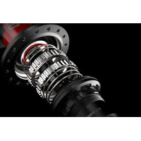 The patent pending Ratchet DEG System was designed by taking a different angle than the common high engagement freehub systems, to deliver a smaller engagement angle and maximized reliability. The simultaneous full engagement of the ratchets provides a larger contact patch than pawl hubs and thus a more balanced load distribution, resulting in higher reliability.